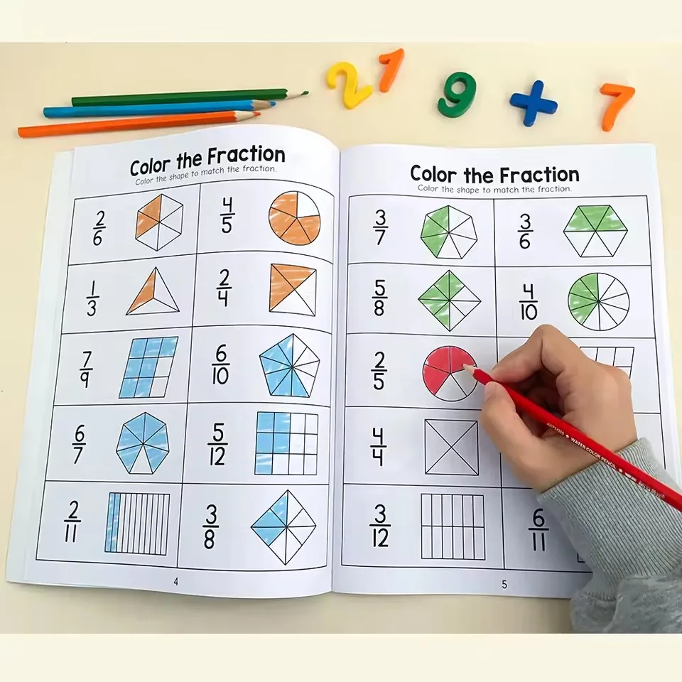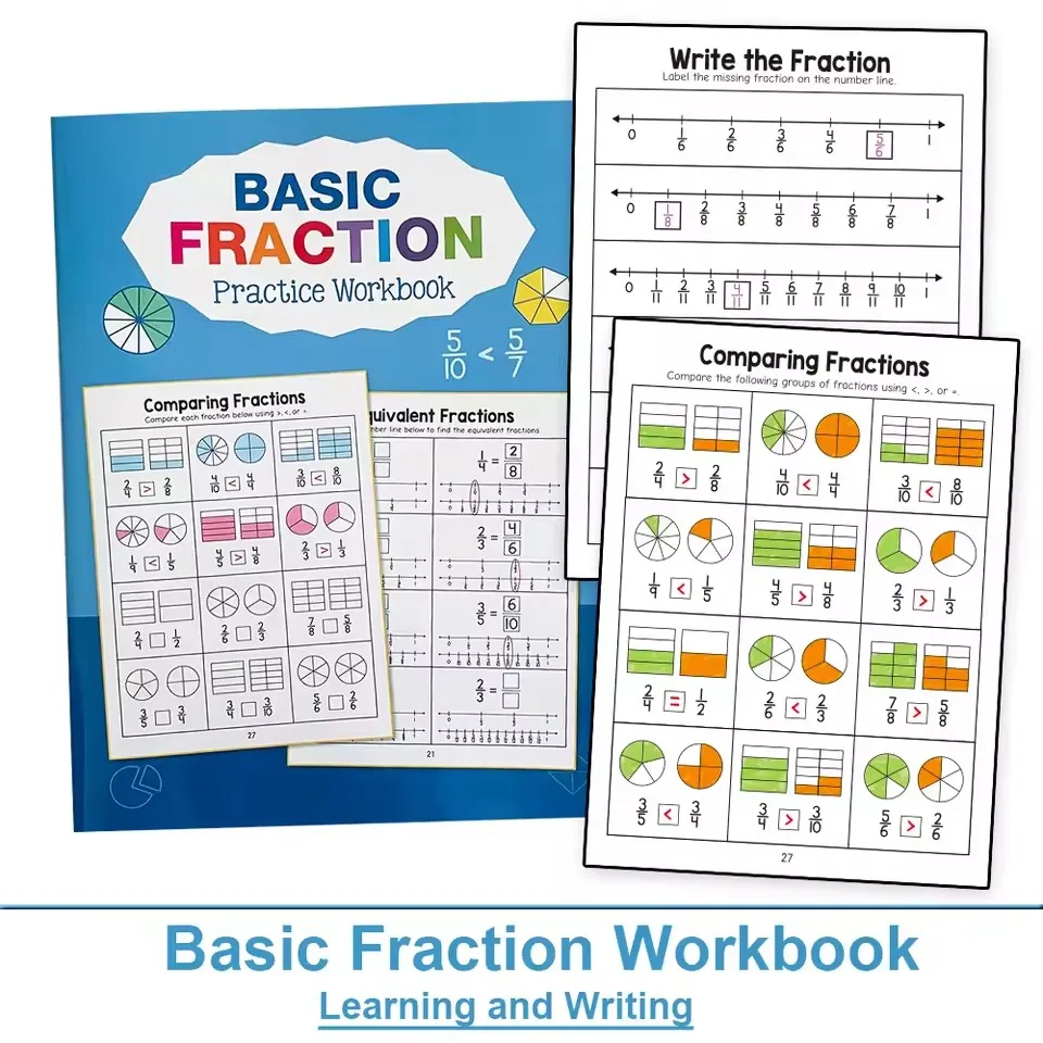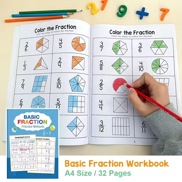 Montessori Fractions Workbook Arithmetic Learning Teaching Aids Grade 3-4 Primary School Math Cognitive