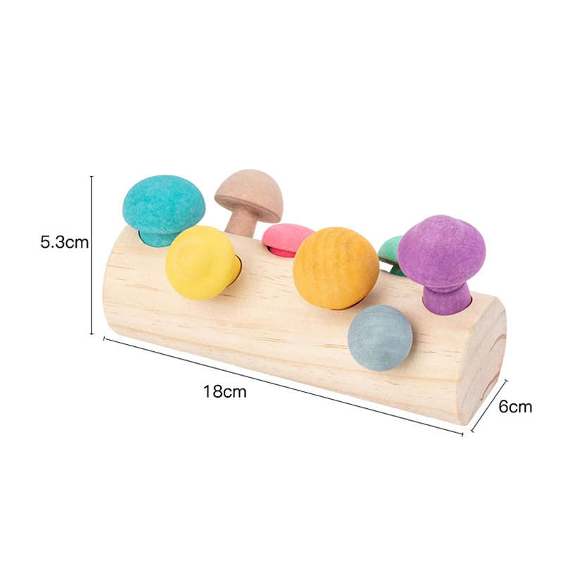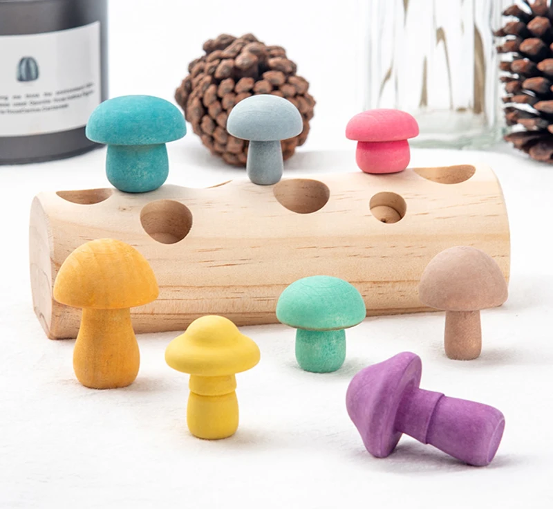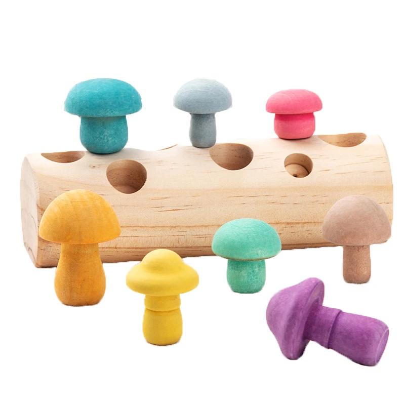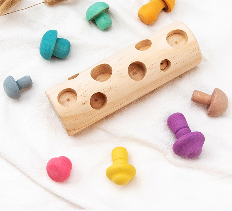 Wooden Rainbow Blocks Mushroom Picking Game Montessori Educational Wooden Baby Toys Developmental Shape Matching Assembly Grasp