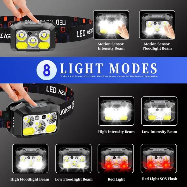 The headlight is equipped with 5 high-performance LEDs with 400 lumens, which can be clearly seen during nighttime exploration, emergency situations, and outdoor activities. Very suitable for users seeking headlights with strong and bright light in any environment