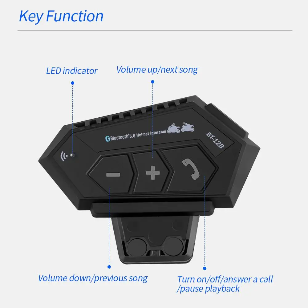 Support 2 riders, or front and rear seat intercom, distance 300 meters. You can listen to music while talking to each other.