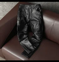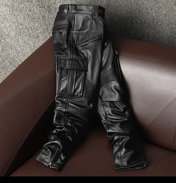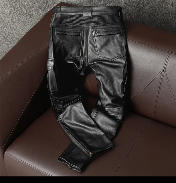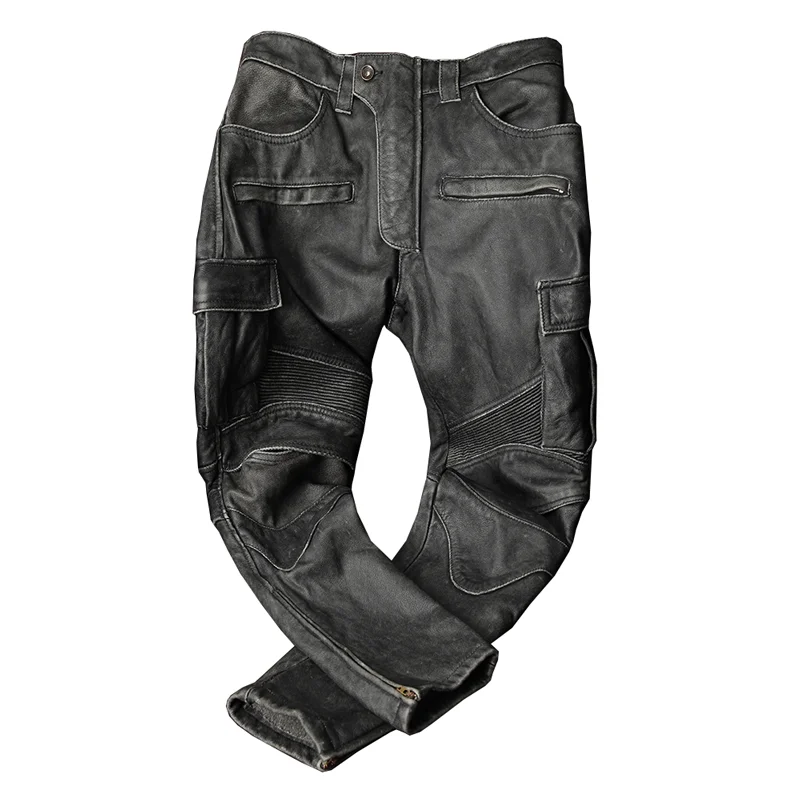 Motorcycle Leather Pants for Men Genuine Cowhide Protectives Motor Biker Leather Pant Protectors Pantalones Cuero Moto
