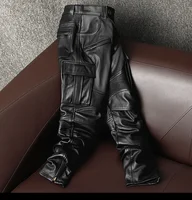 Men Leather Pants Elastic Waist Faux Leather Pants Men Joggers Zipper Pockets Black Streetwear Slim Pencil Pant Men Clothing