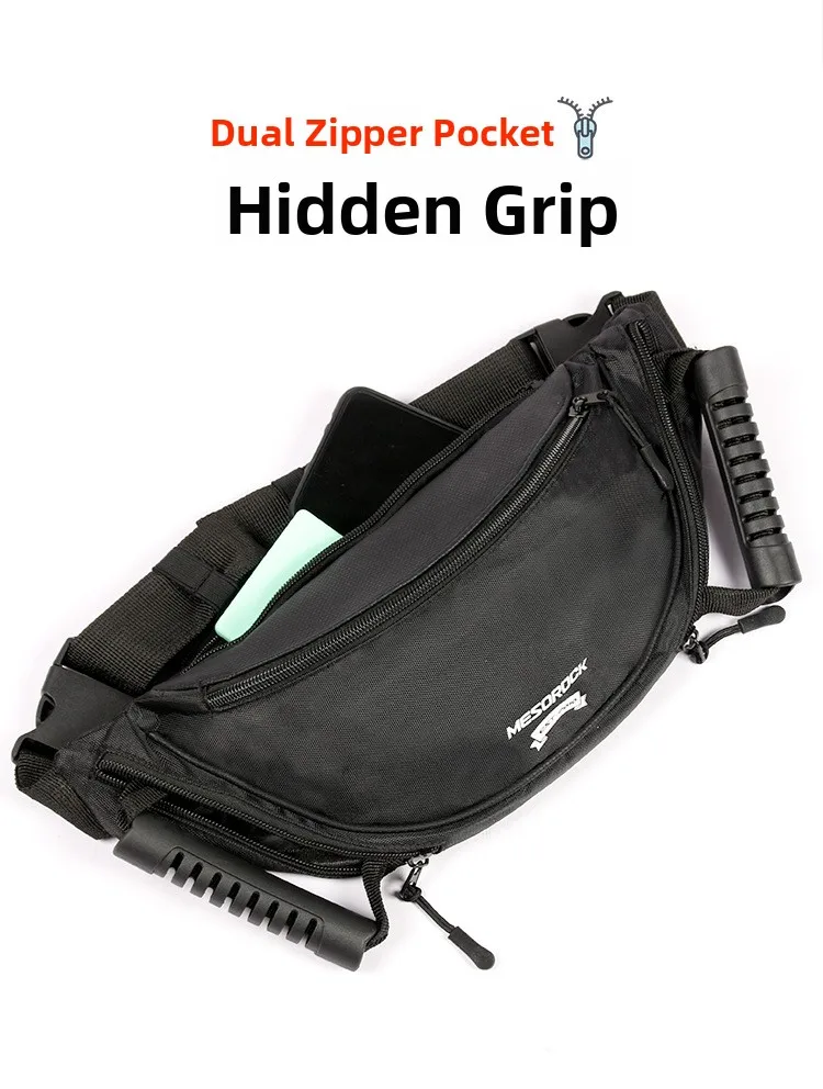 The waist bag handle is designed for easy grip, ensuring safety and comfort during your motorcycle rides.