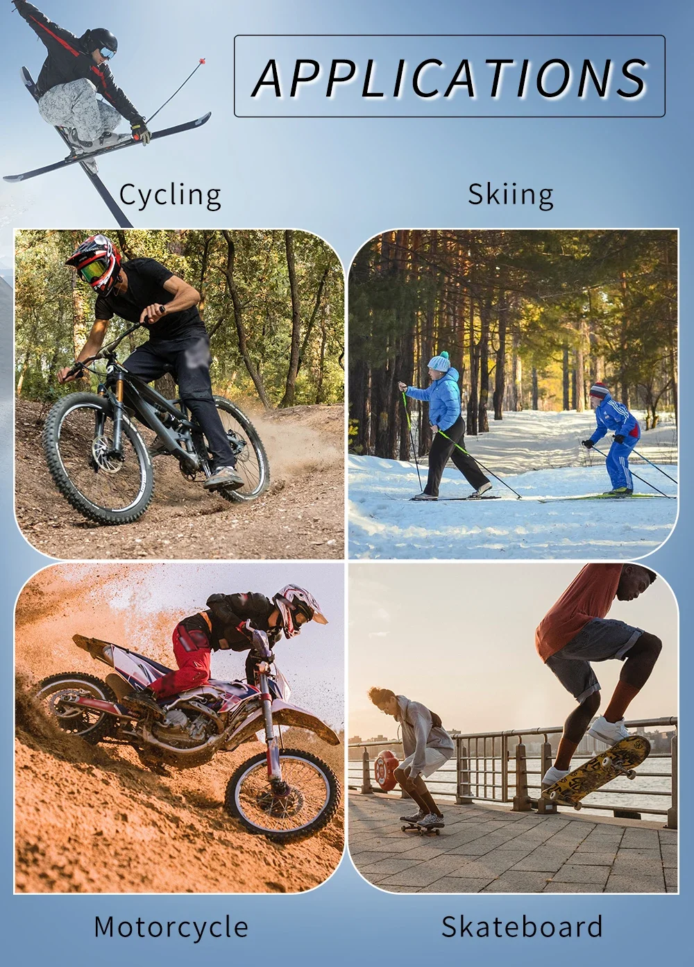 Suitable for skiing, snowboarding, skating, riding, etc.