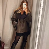 Streetwear Vintage New Fashion Letters Flocking PU Loose Jacket Women Y2K Harajuku Hip Hop Popular Casual Joker Couple Jacket