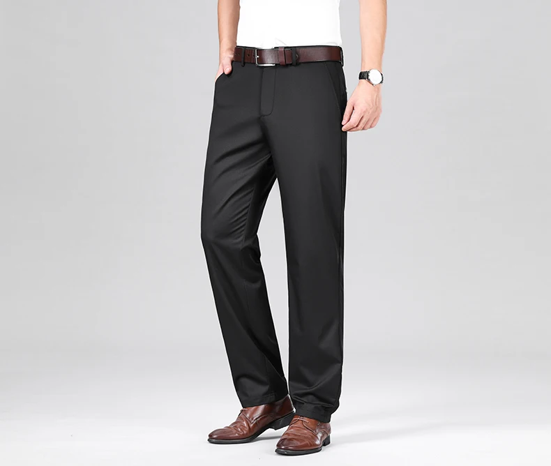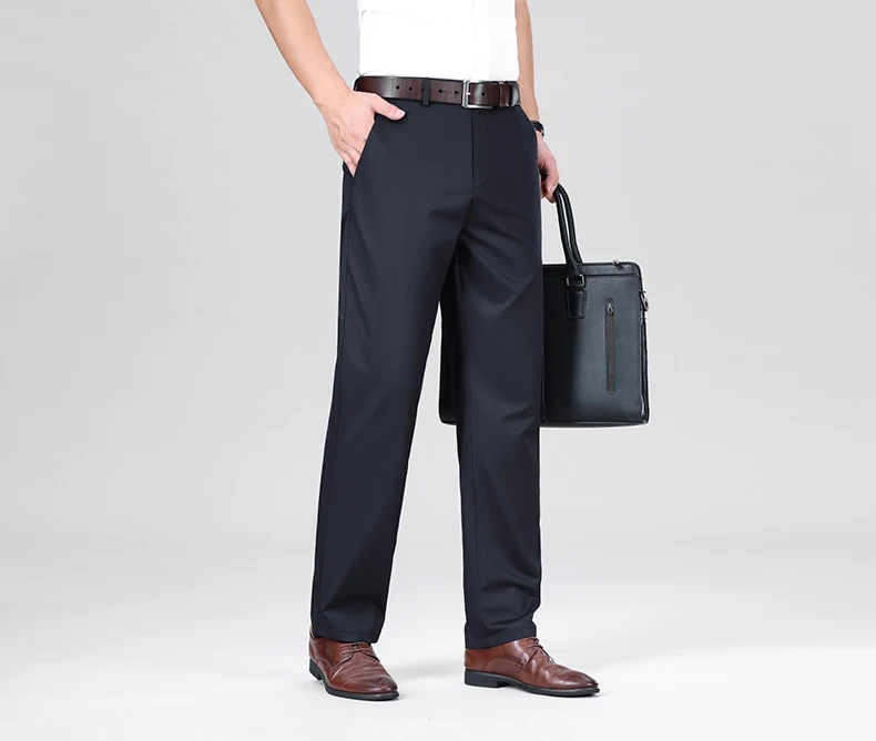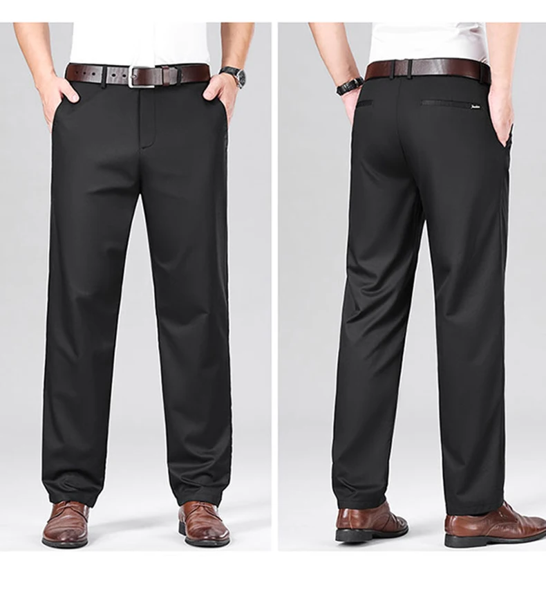 Mulberry Silk Pants Men's Summer Thin Breathable Business Casual Loose Trousers Straight Non-iron Solid Color Plus Size 3colors