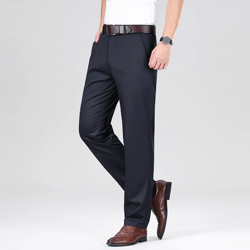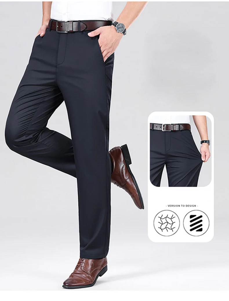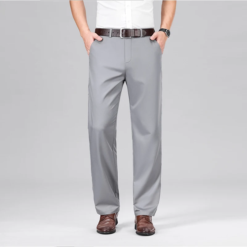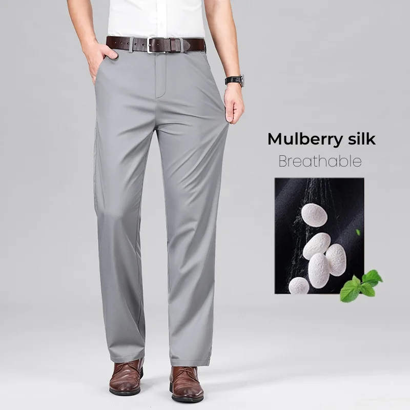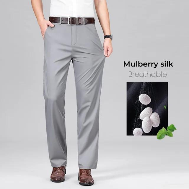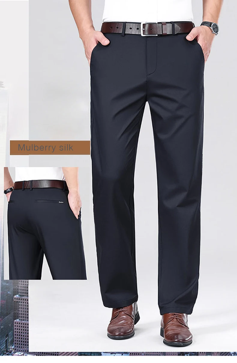 Mulberry Silk Pants Men’s Summer Thin Breathable Business Casual Loose Trousers Straight Non-iron