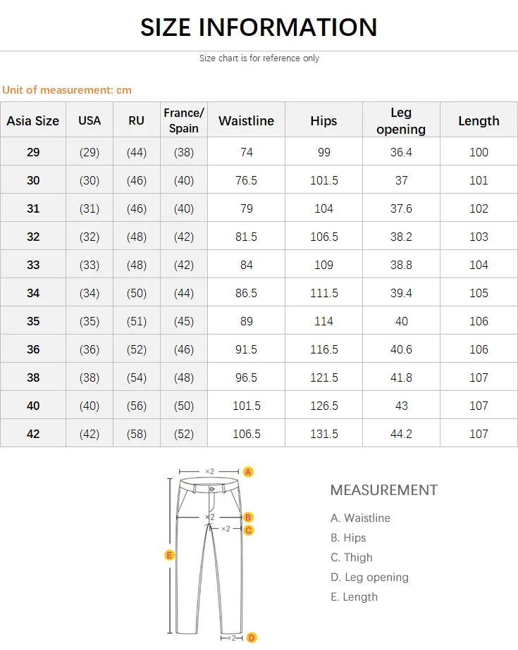 1. The size is Chinese size, pants size 32 = 32 inches waist = 81.5cm waist.