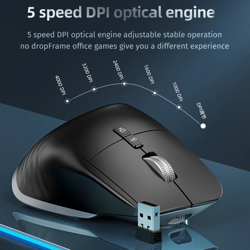 Multi-Device Wireless Mouse 1000-4000DPI Bluetooth-Compatible 5.0+2.4G Right Hand Computer Mice Optical