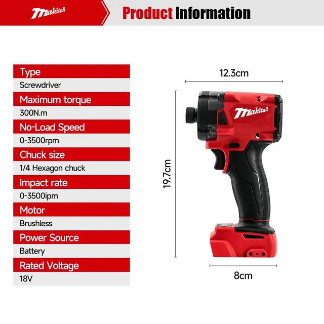 – Powerful Motor: This impact screwdriver can drive screws or tighten nuts at astonishing speed,brushless motor make it more long life.