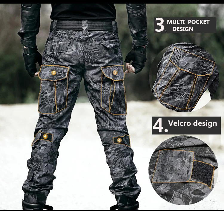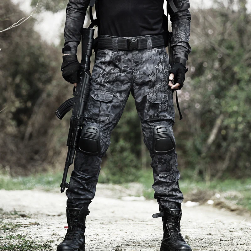 Multicam Camouflage Military Tactical Pants Army Wear-resistant Hiking Pants Paintball Combat Cargo Pant With Knee Pads New