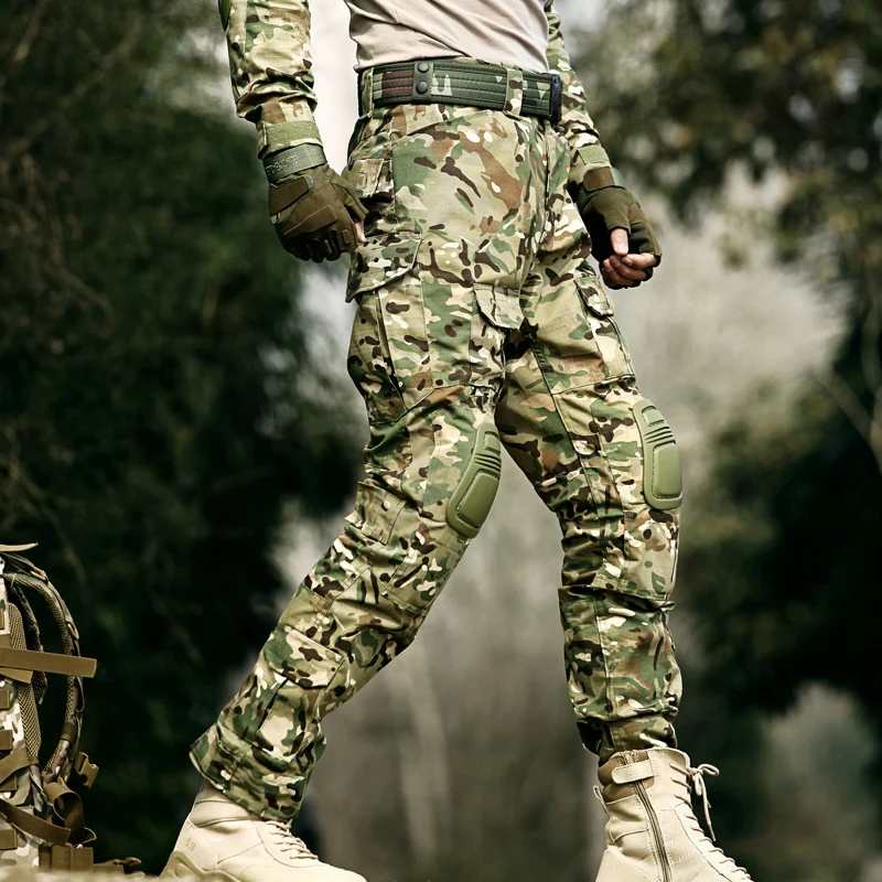 Multicam Camouflage Hunting Tactical Pants Wear-resistant Hiking Pants Paintball Combat Cargo Pant with Knee Pads New