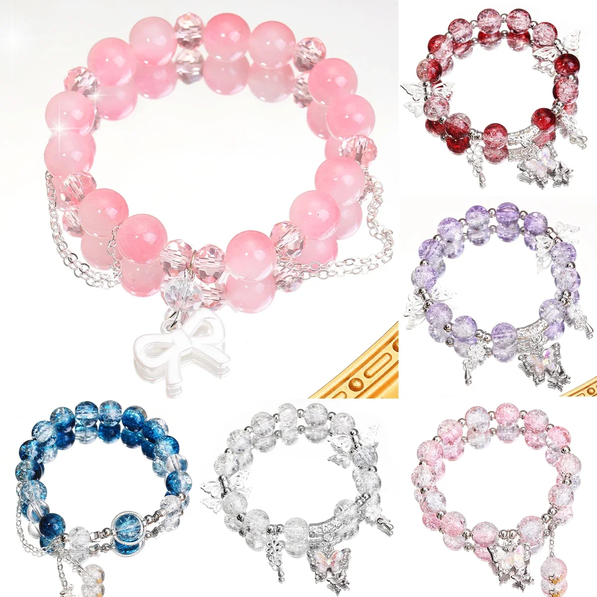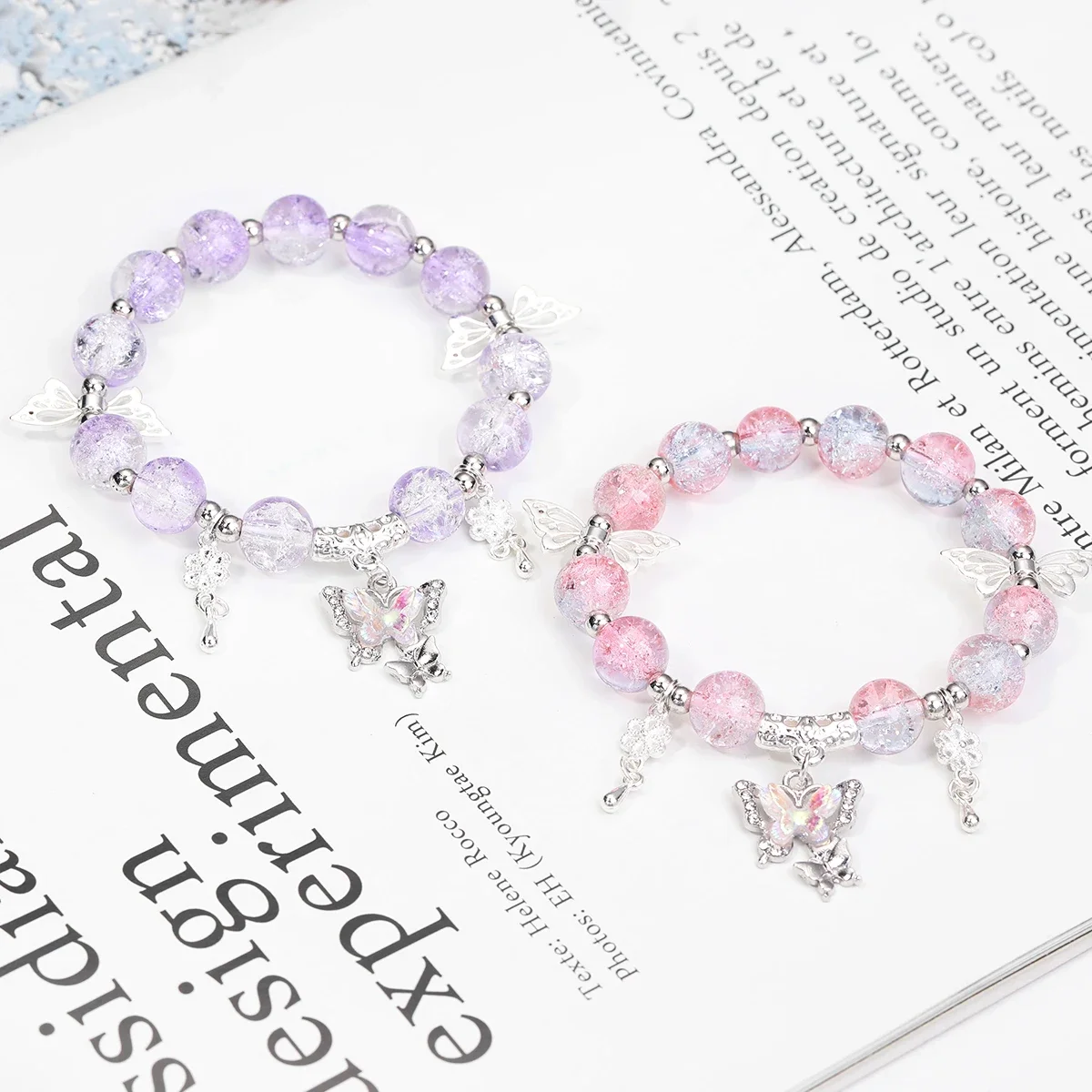Multifunctional Butterfly Beaded Bracelet Sweet Design Girl Hand Ornament Friendship Commemorative Summer