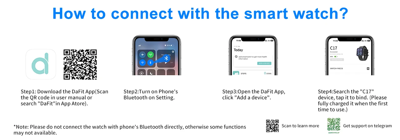 3.Download “Dafit”app to click the “ADD A DEVICE” on App to Connect A DEVICE