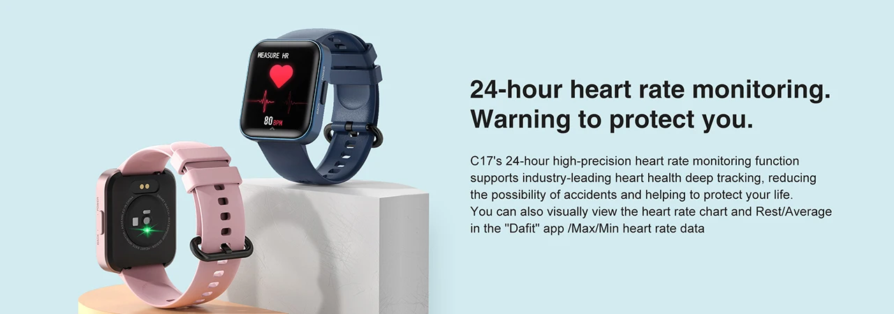 You can also intuitively check the heart rate graph and Rest/Average/Max/Min heart rate data in the “Dafit”app.