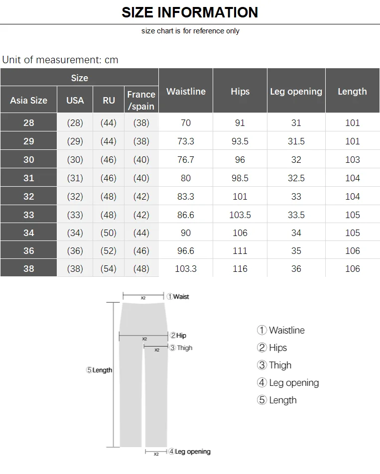1. The manufacturer is a China size,32 Size ≈ 32 inches Waist Please tell us your height and weight, and we suggest a suitable size for you.