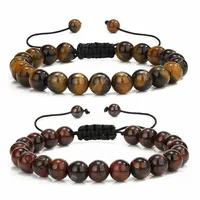 HNSP Tiger Eye Bead Bracelet For Men Natural Stone Elastic Rope Hand Jewelry Rosary Accessories