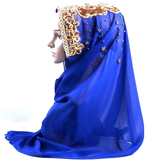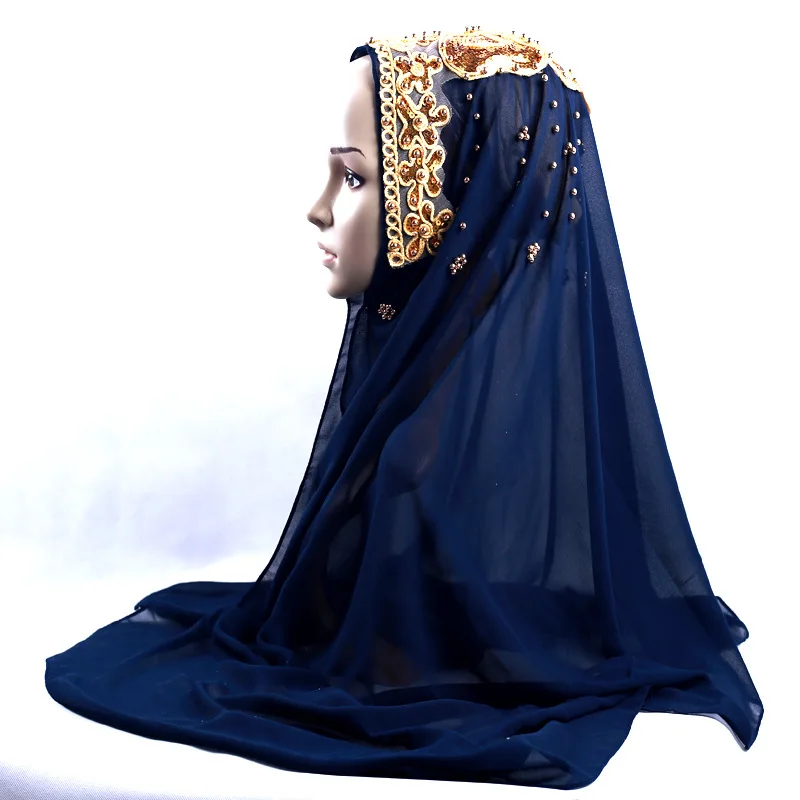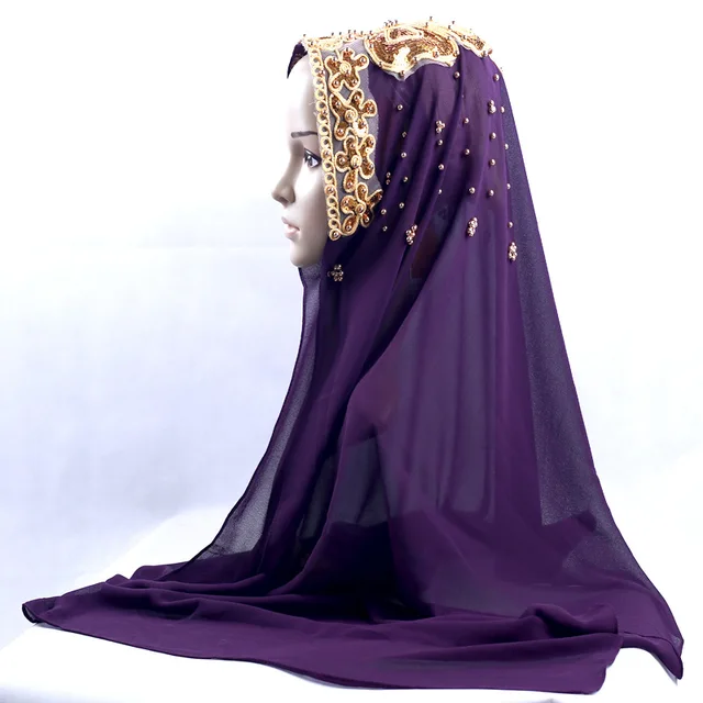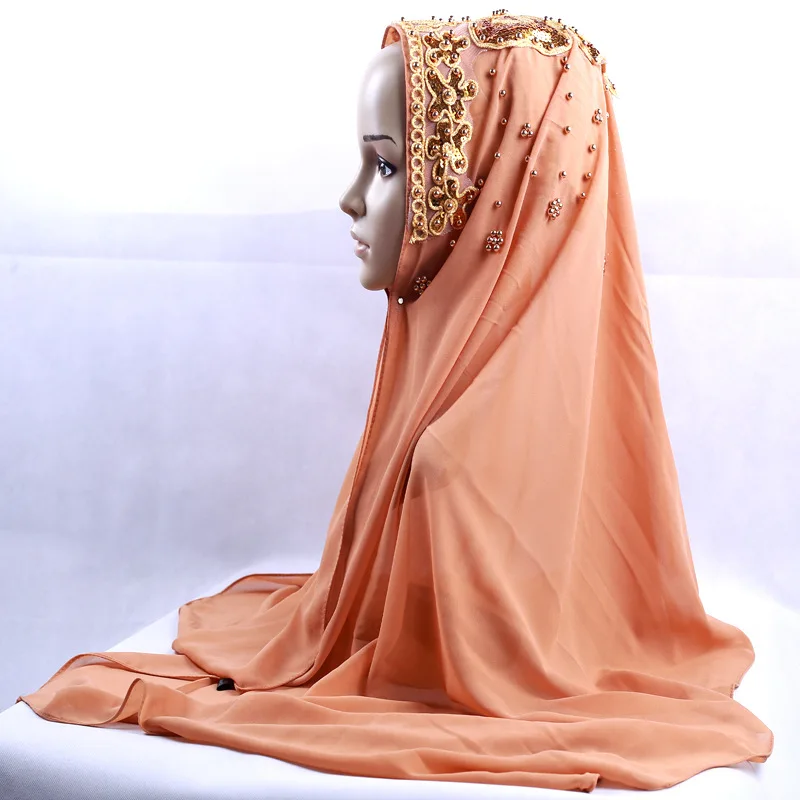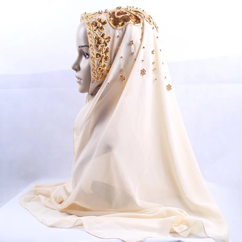 Muslim Women Chiffon Long Scarf Turban Hijab Islam Scarves Headwrap Beads Chiffon Headscarf Shawl Bufanda Foulard Turbante Mujer