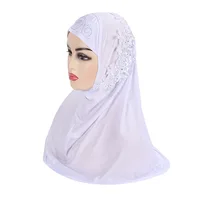 Muslim Girls Hijab Lace Flowers Pull On Amira Islamic Scarf Head Wrap Headscarf Diamonds Hijabs Ready