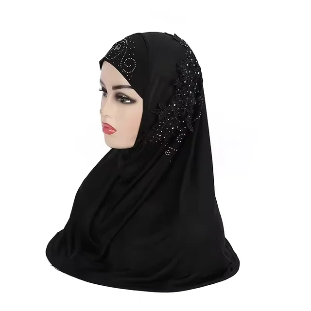 Muslim Girls Hijab Lace Flowers Pull On Amira Islamic Scarf Head Wrap Headscarf Diamonds Hijabs Ready Made To Wear Instant Amira