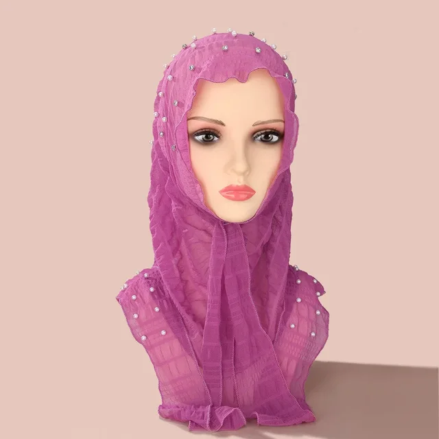 Muslim Hijab Solid Color Lace Mesh Rhinestone Arab Women Beaded Soft and Easy to Wear Lace Up Head Wrap