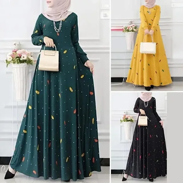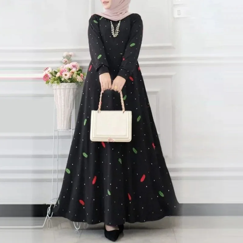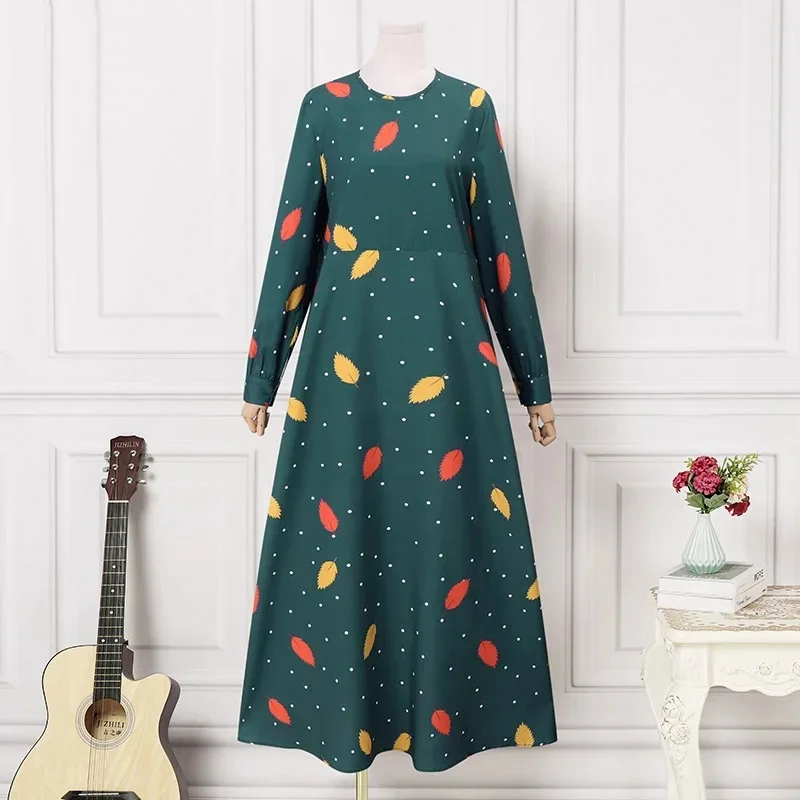 Be the first to review “Muslim Leaf Pattern Long Sleeve Dress for Women Casual Bohemian Polka Dot Print Holiday Muslim Dress”