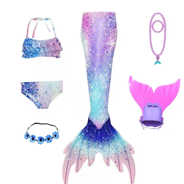 Style 1:6 pcs/set (mermaid tail TUPE tops underwear fins necklace set headwear)