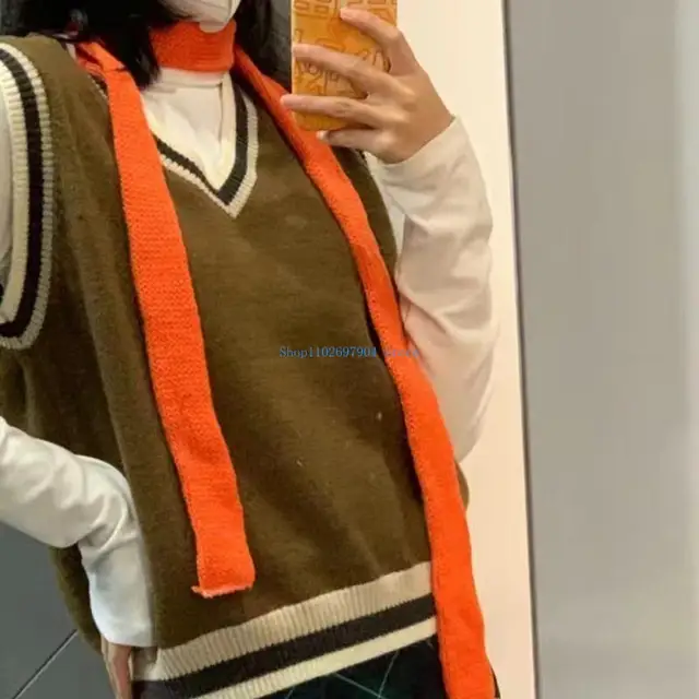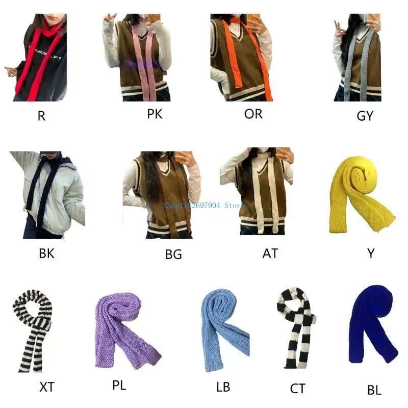 Striped Y2K skinny scarf for women.