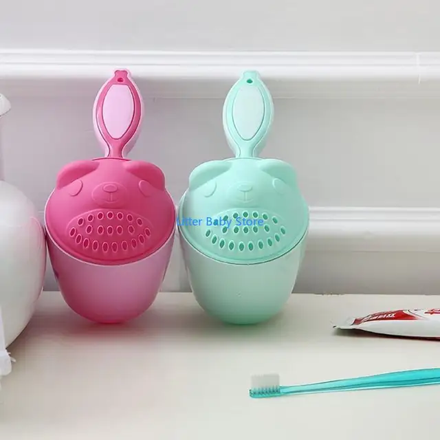 N80C Baby Bath Waterfall Rinser Kids Shampoo Rinse Cup Bath Shower Plastic Spoons Cup