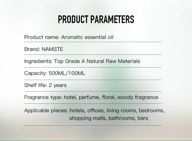 Namste 100ML Perfume Oil Hotel Essential Oil Electric Aromatic oasis Home Fragrances Aroma Diffuser Air Freshener essential oil