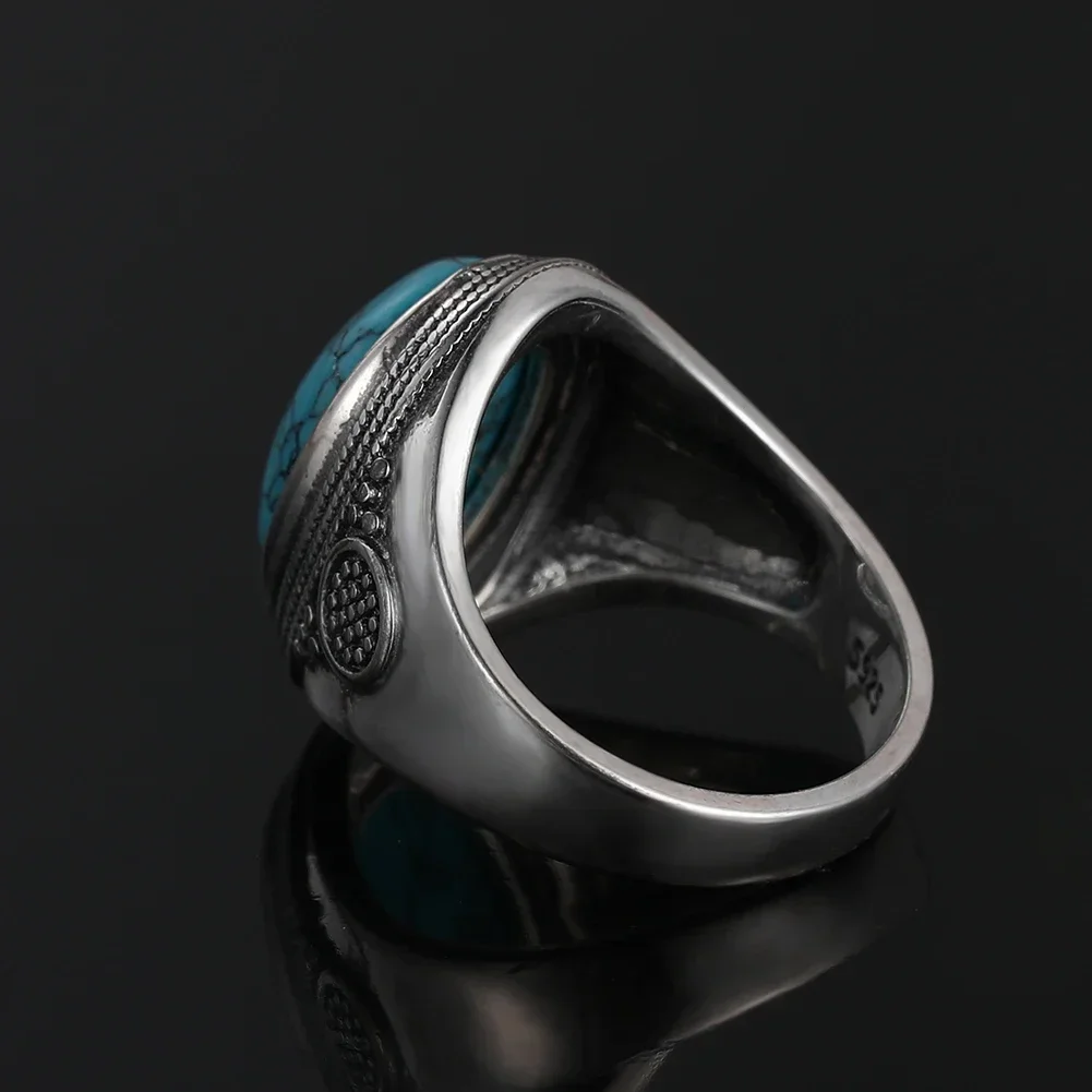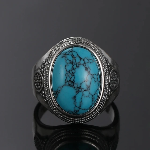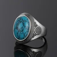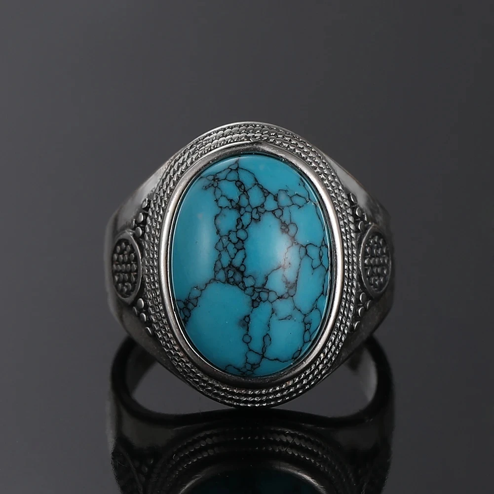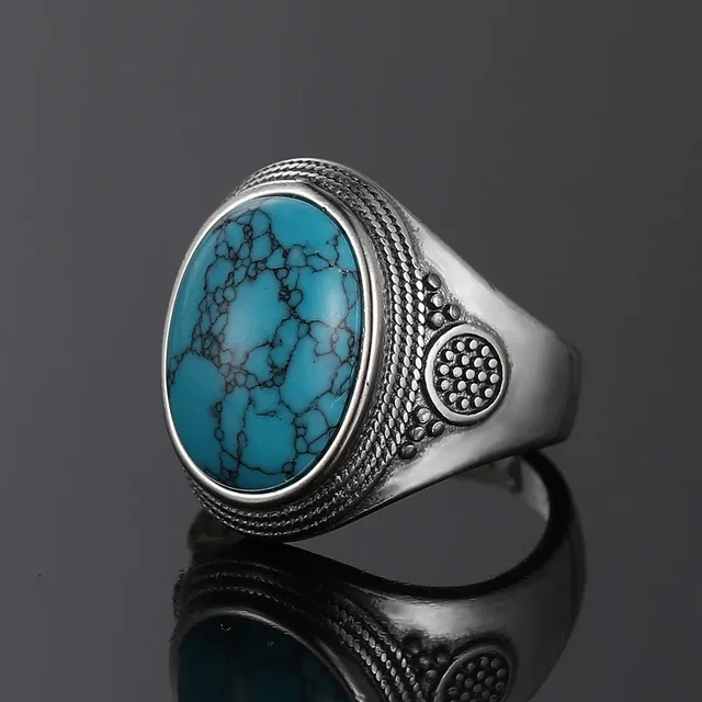 Natural 10x14MM Oval Turquoise Rings Sterling Silver Ring for Men Women Luxury Vintage Fine Jewelry Anniversary Party Gift