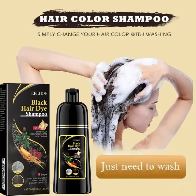 Natural Herbal Hair Dye Shampoo 3 in 1 Change Hair Color Gray Hair to Dark Brown Black Deep Nourishing