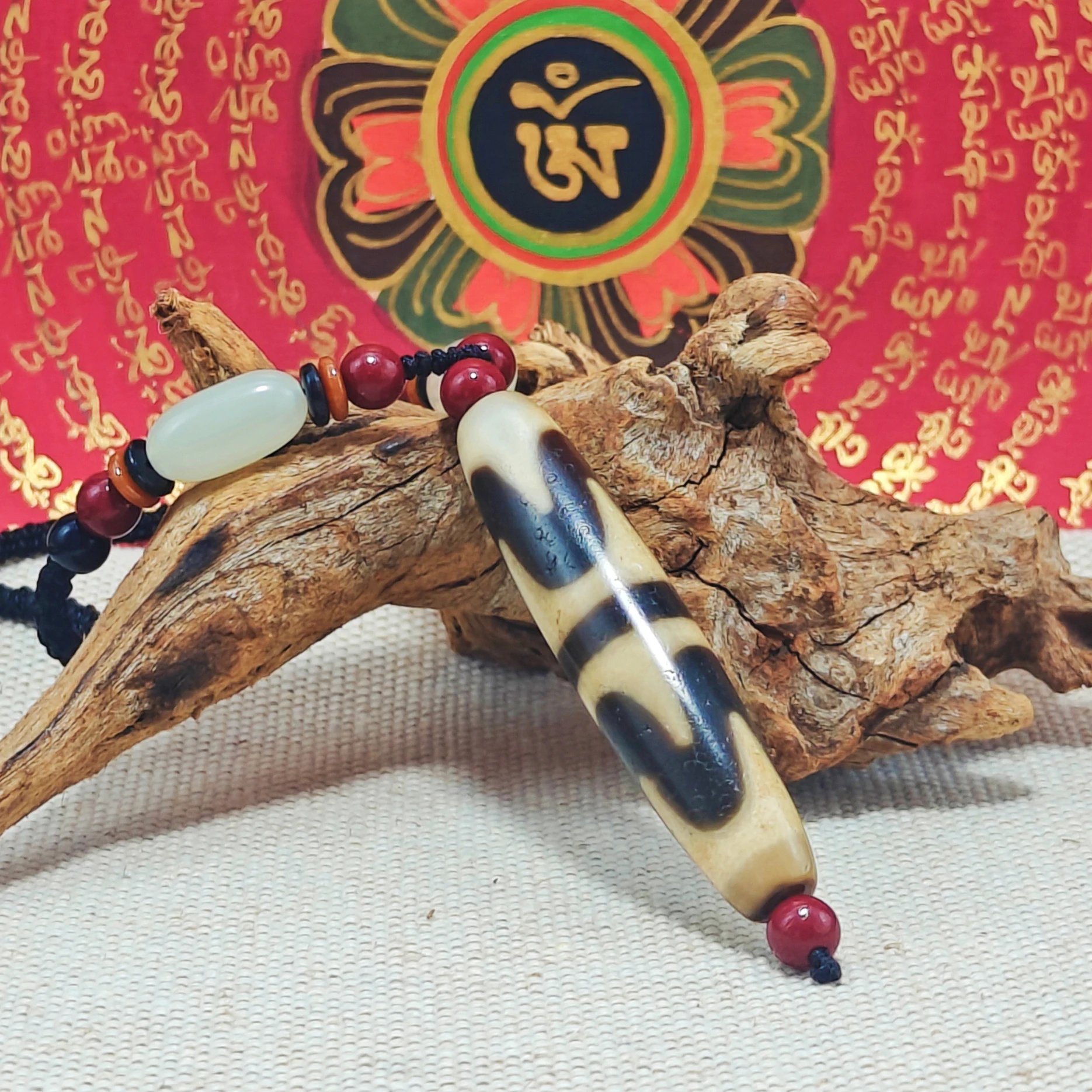 The Tibetan agate naja adds a touch of cultural intrigue, making this necklace a fascinating piece of jewelry.