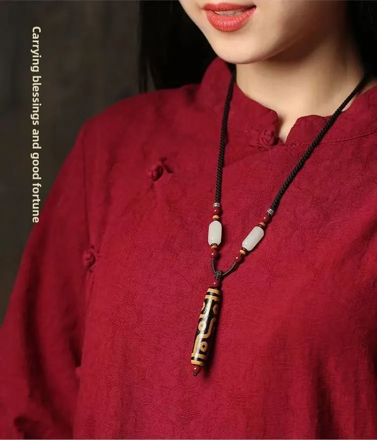 Natural Tibetan Agate Tianzhu Genuine Product Eight-Eyed Necklace Pendant for Men And Women Original Design Jewelry Accessory
