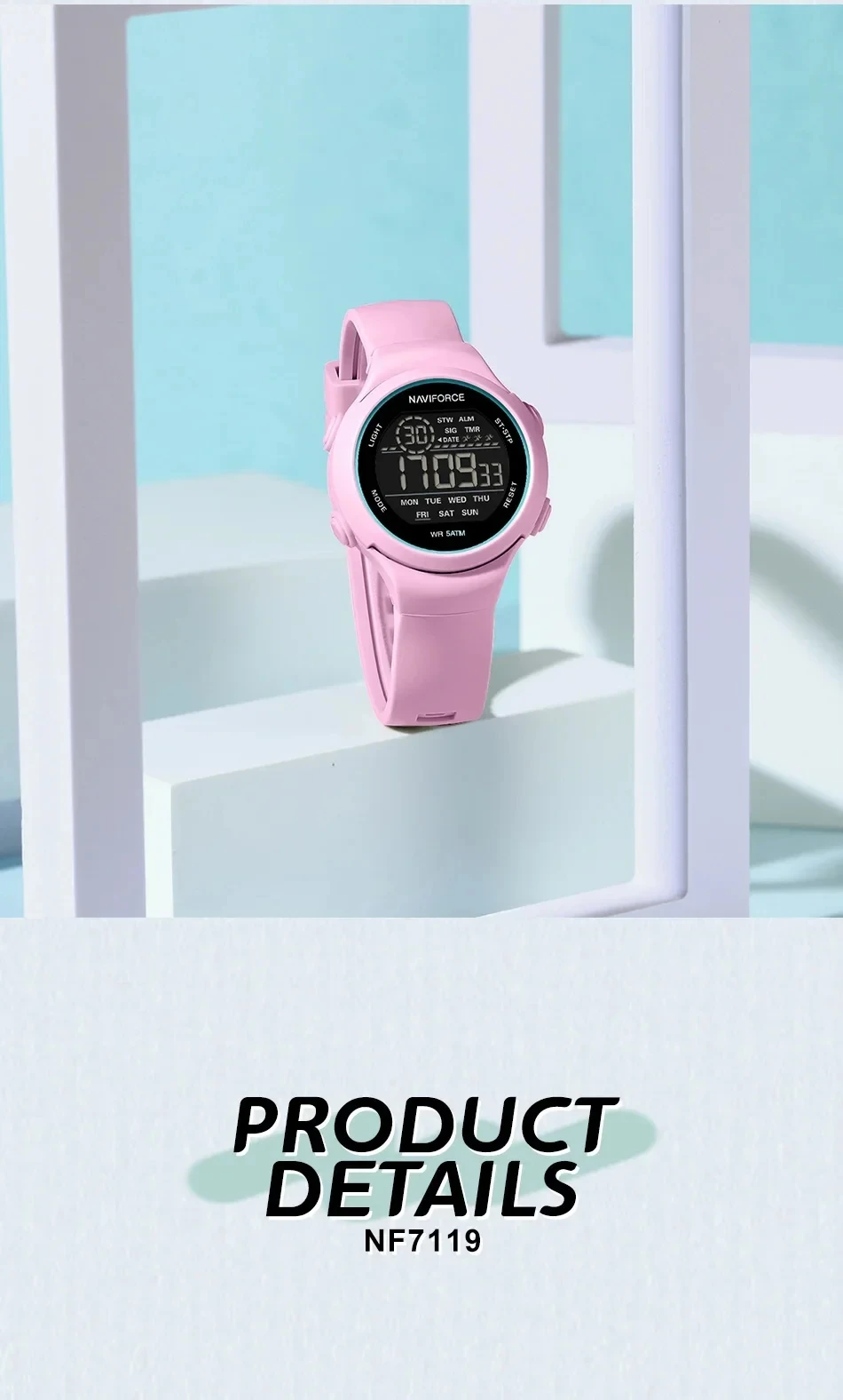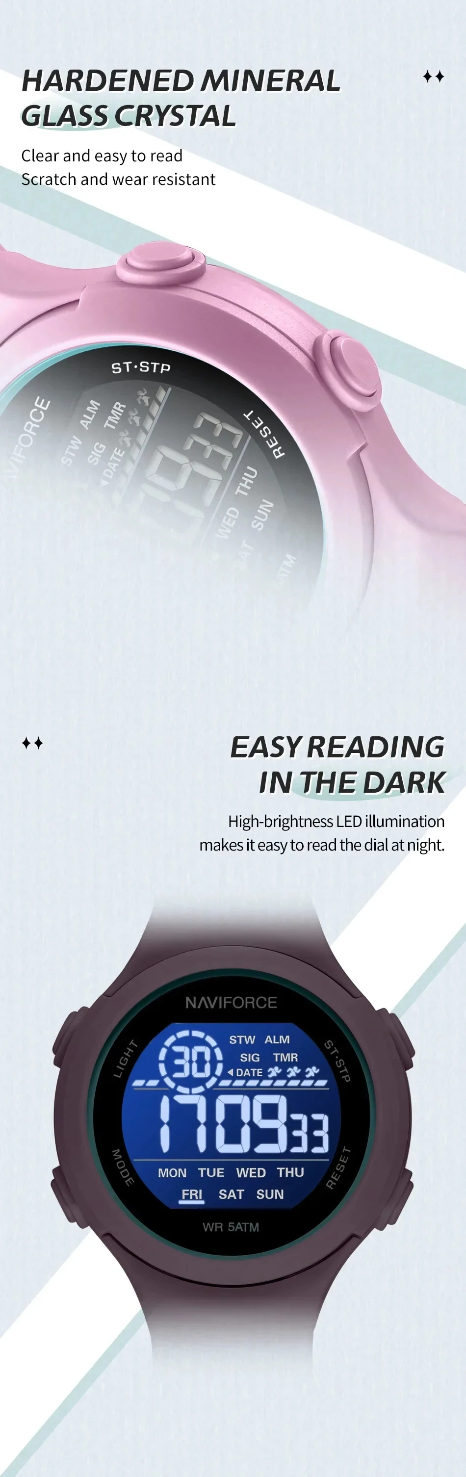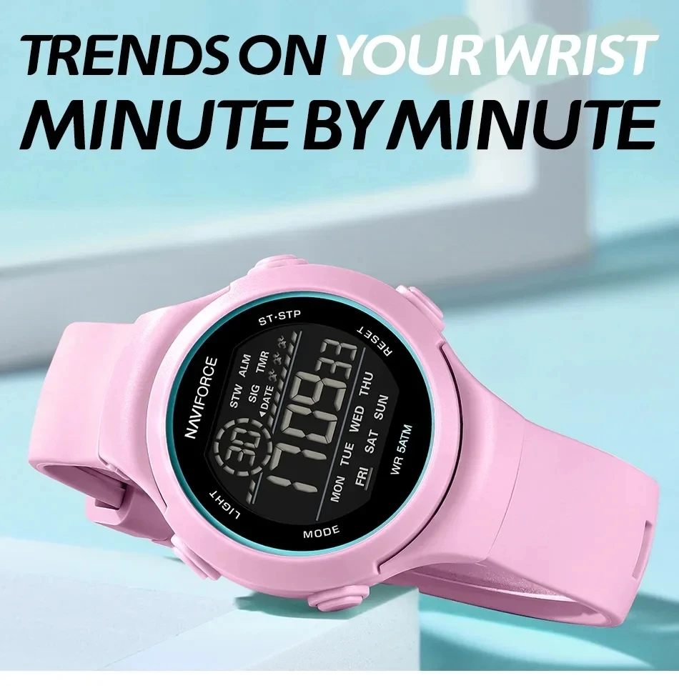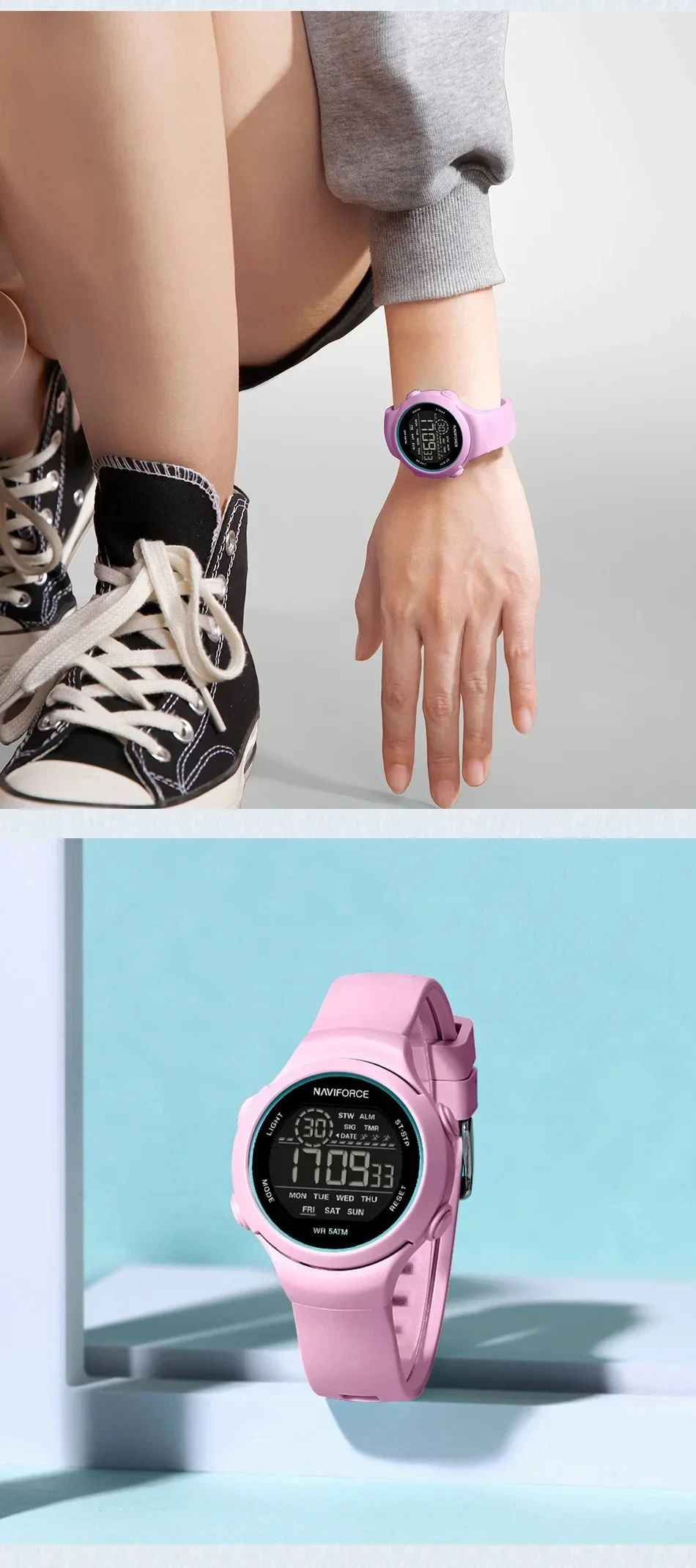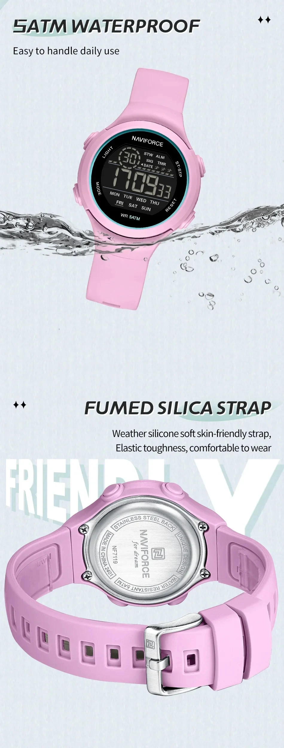 Naviforce 7119 Sports Watch For Women Silica Strap Waterproof LCD Digital Display Electronic Women's Wristwatches Reloj Mujer