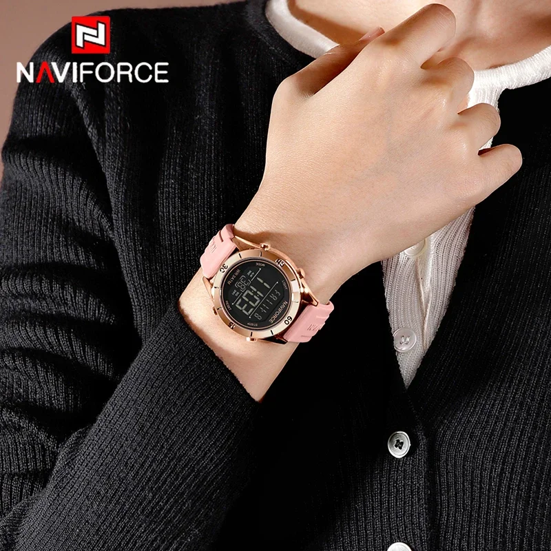 NAVIFORCE NF7108 Lady Digital Sports Luminous Multifunction Waterproof Chrono Wristwatch Outdoor Girls Fashion Watch