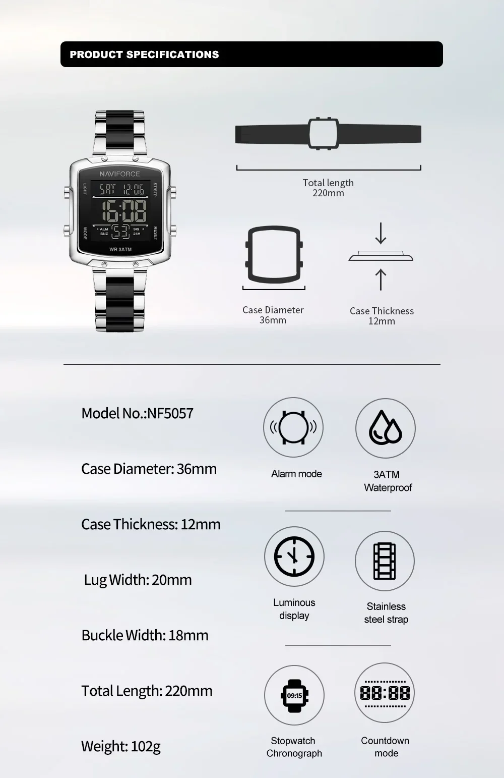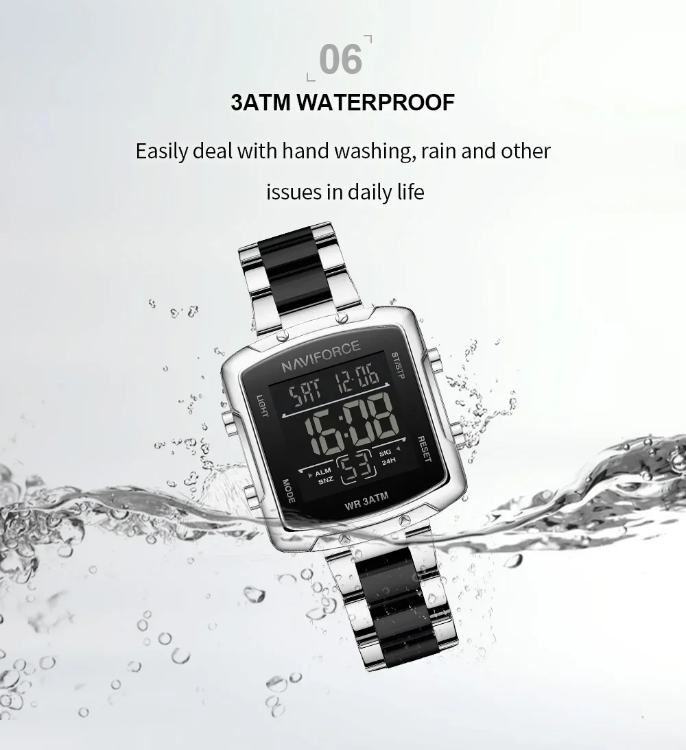 Function: 30m waterproof, shockproof and date display.