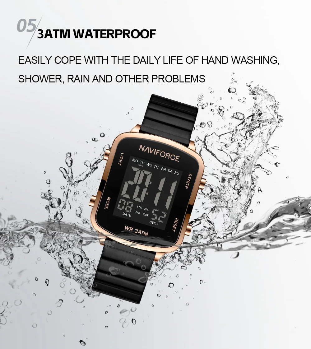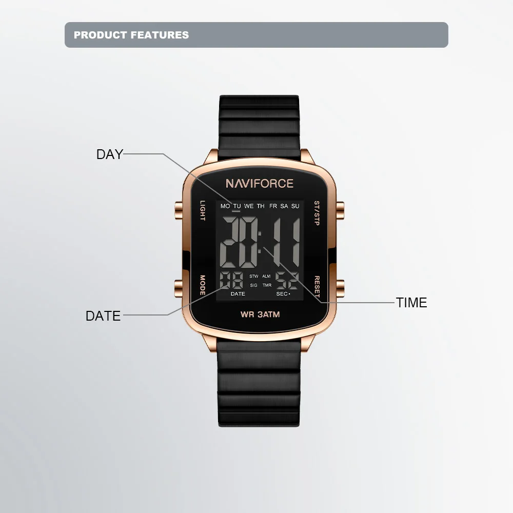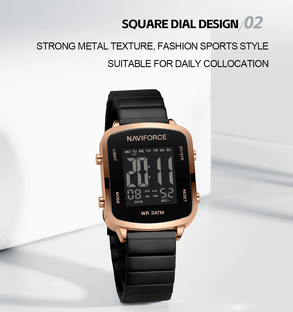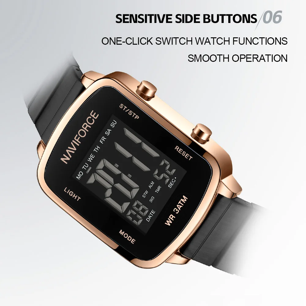 NAVIFORCE Fashion Sports Digital Women’s Watch Stopwatch Timekeeping 3ATM Waterproof Luminous Stainless