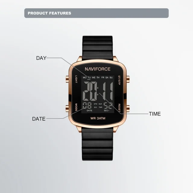 Be the first to review “NAVIFORCE Fashion Sports Digital Women’s Watch Stopwatch Timekeeping 3ATM Waterproof Luminous Stainless”