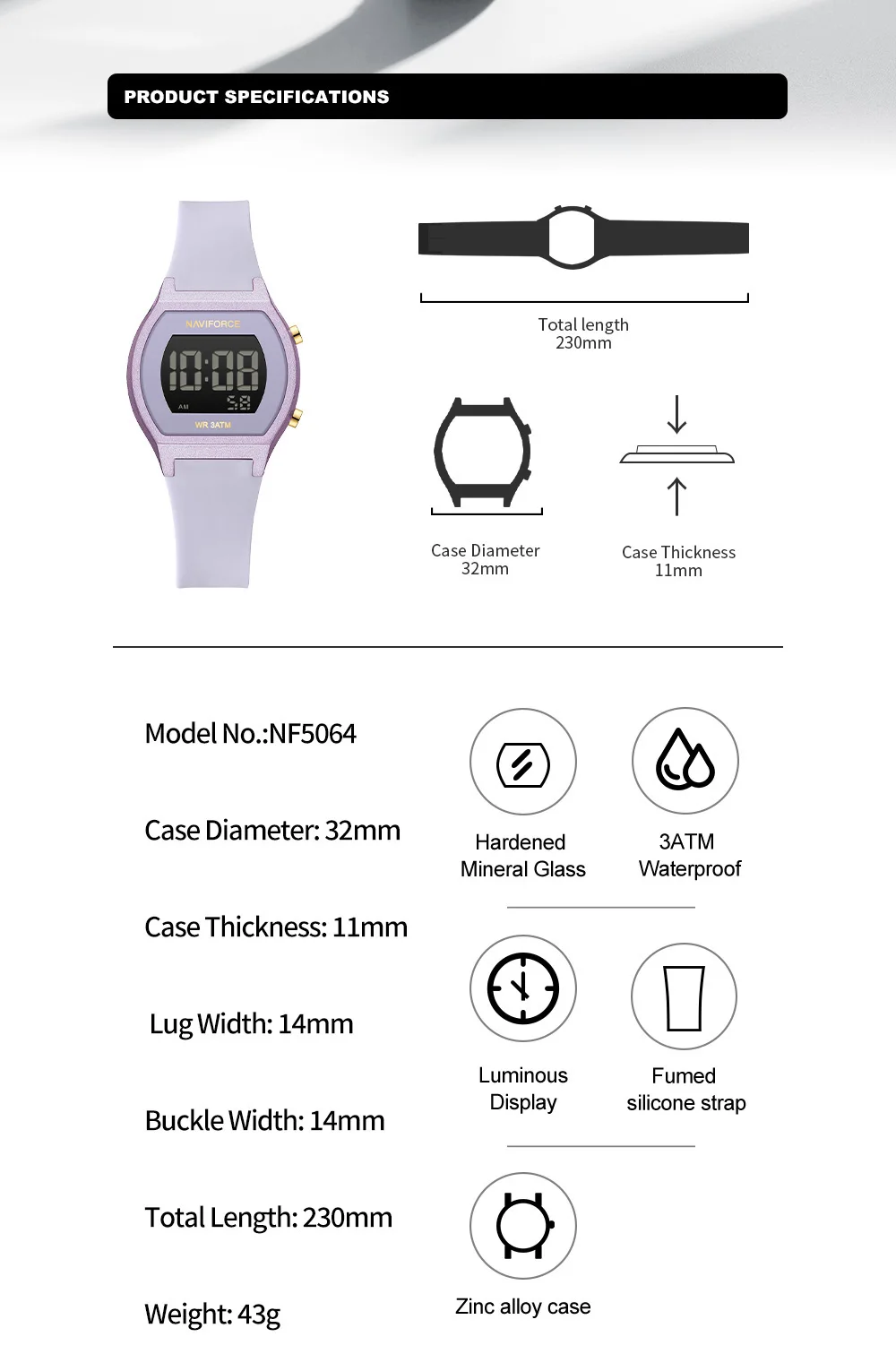 Function: 30m waterproof and shockproof.