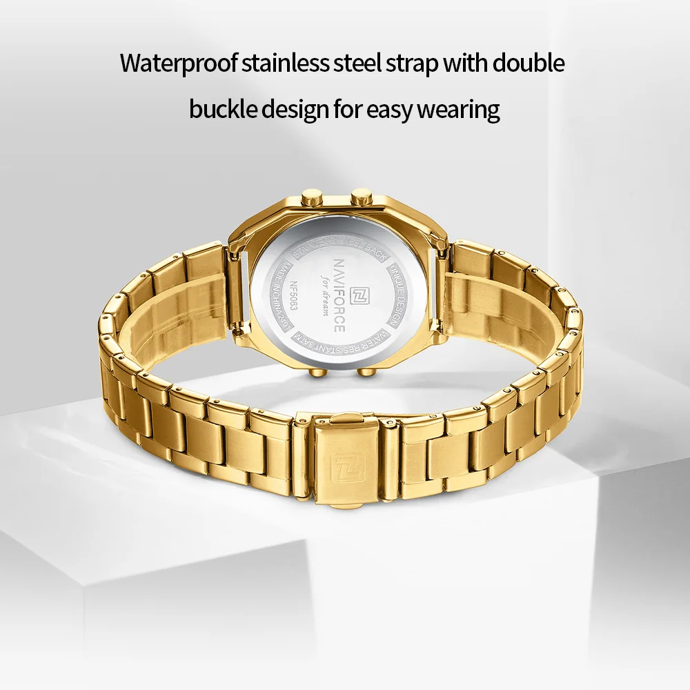 NAVIFORCE Luminous Mode LED Lamp 3ATM Waterproof Elegant Women Electronic Watch Stainless Steel Strap