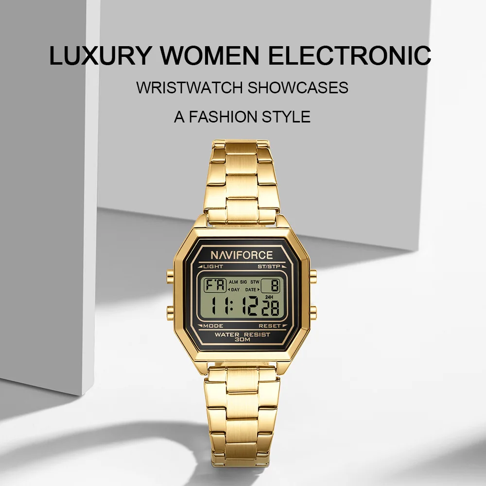 NAVIFORCE Luminous Mode LED Lamp 3ATM Waterproof Elegant Women Electronic Watch Stainless Steel Strap Date Display Luxury Watch