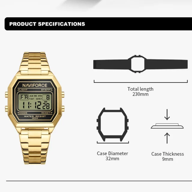 Be the first to review “NAVIFORCE Luminous Mode LED Lamp 3ATM Waterproof Elegant Women Electronic Watch Stainless Steel Strap”