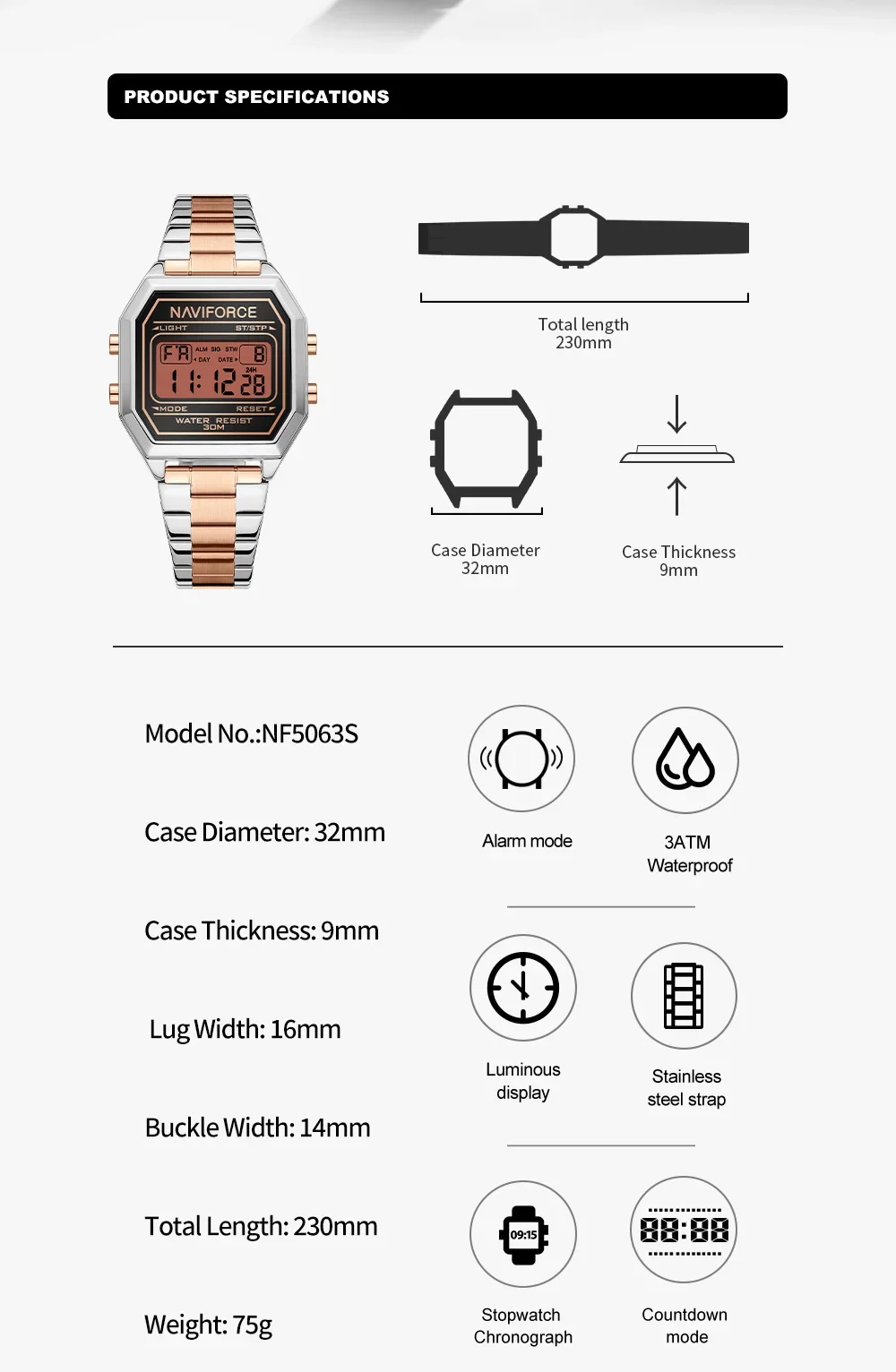 Strap material: stainless steel