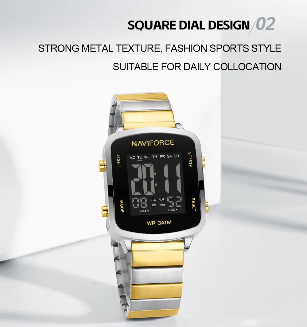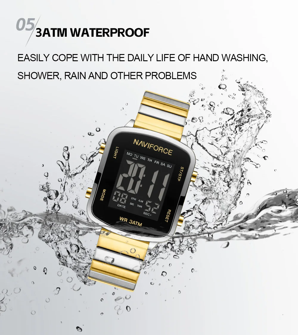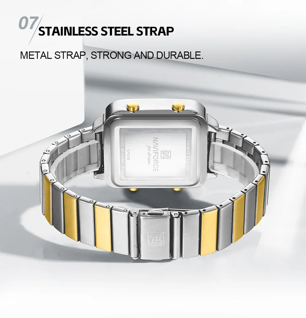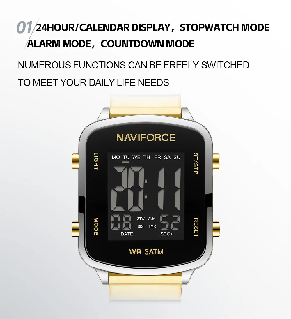 NAVIFORCE Sports Digital Women's Watch Fashion 3ATM Waterproof Stopwatch Timekeeping Luminous Stainless Steel Alarm Ladies'Cock