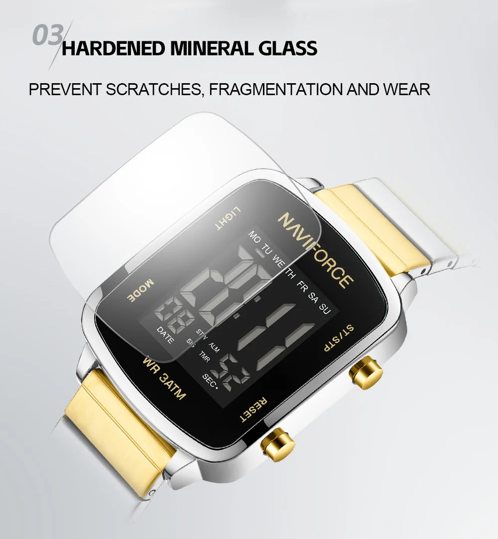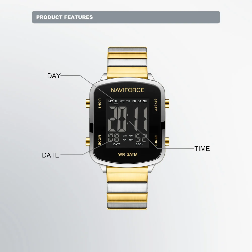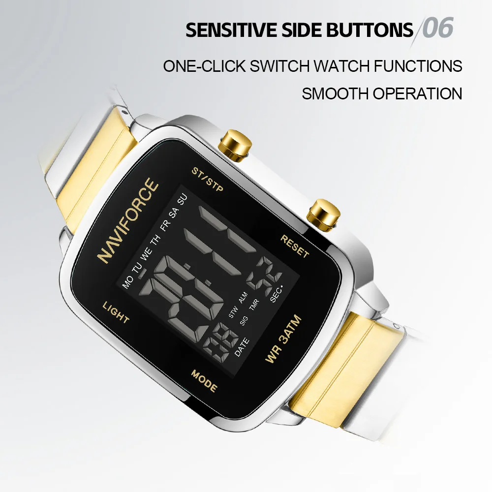 NAVIFORCE Sports Digital Women’s Watch Fashion 3ATM Waterproof Stopwatch Timekeeping Luminous Stainless