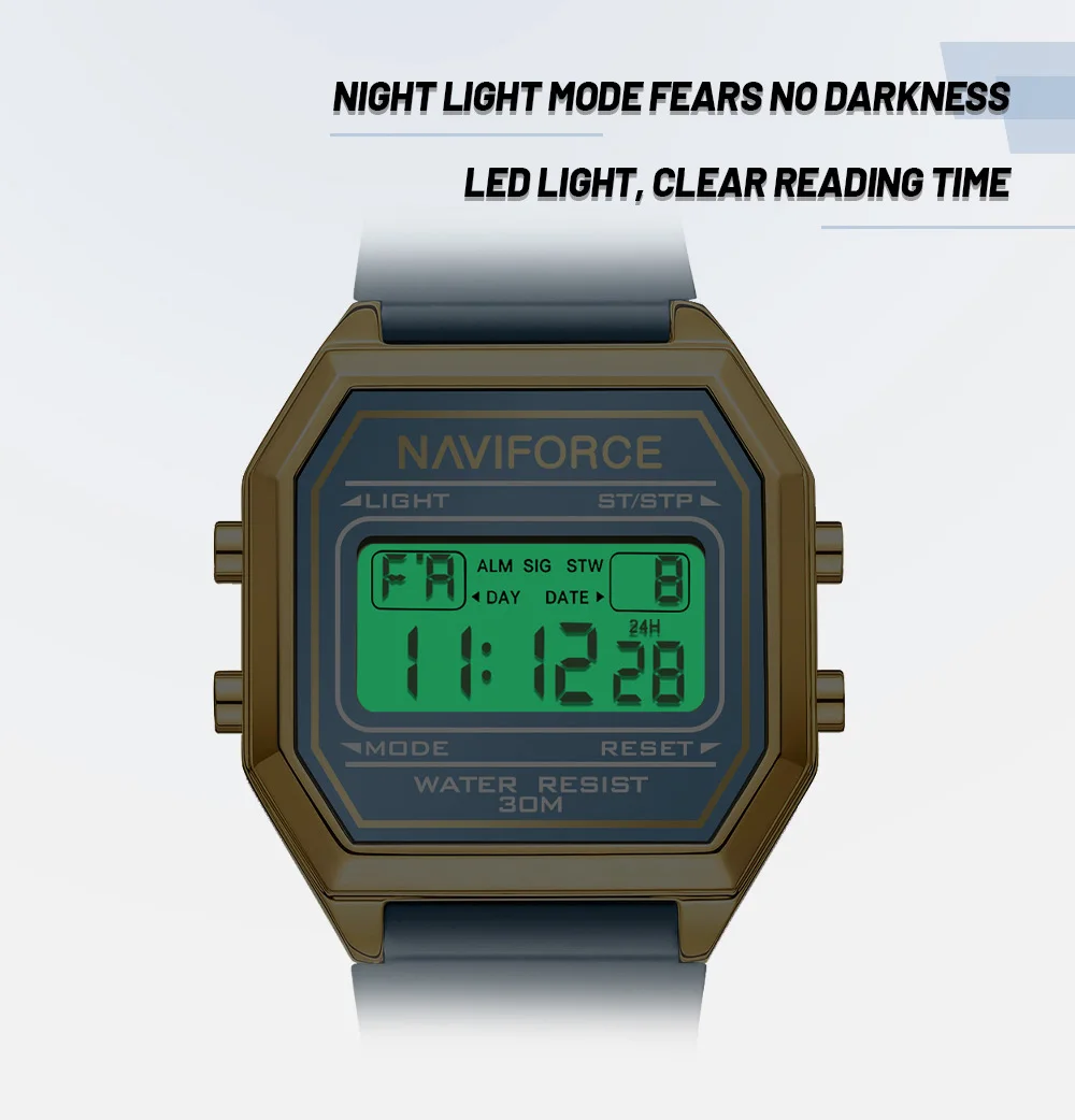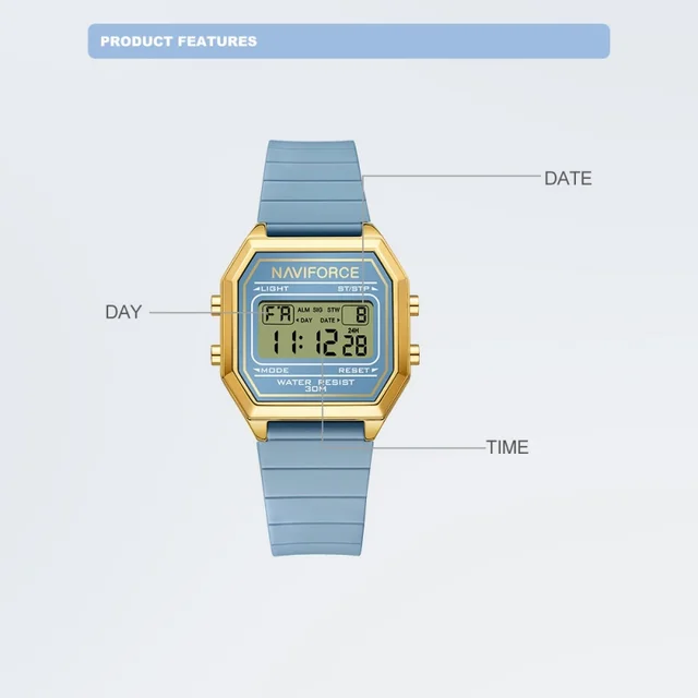NAVIFORCE Woman Fashion Watches Fashion Sports Watch Silicone Strap 3ATM Waterproof Time Display Women's LCD Digital Watch Gift