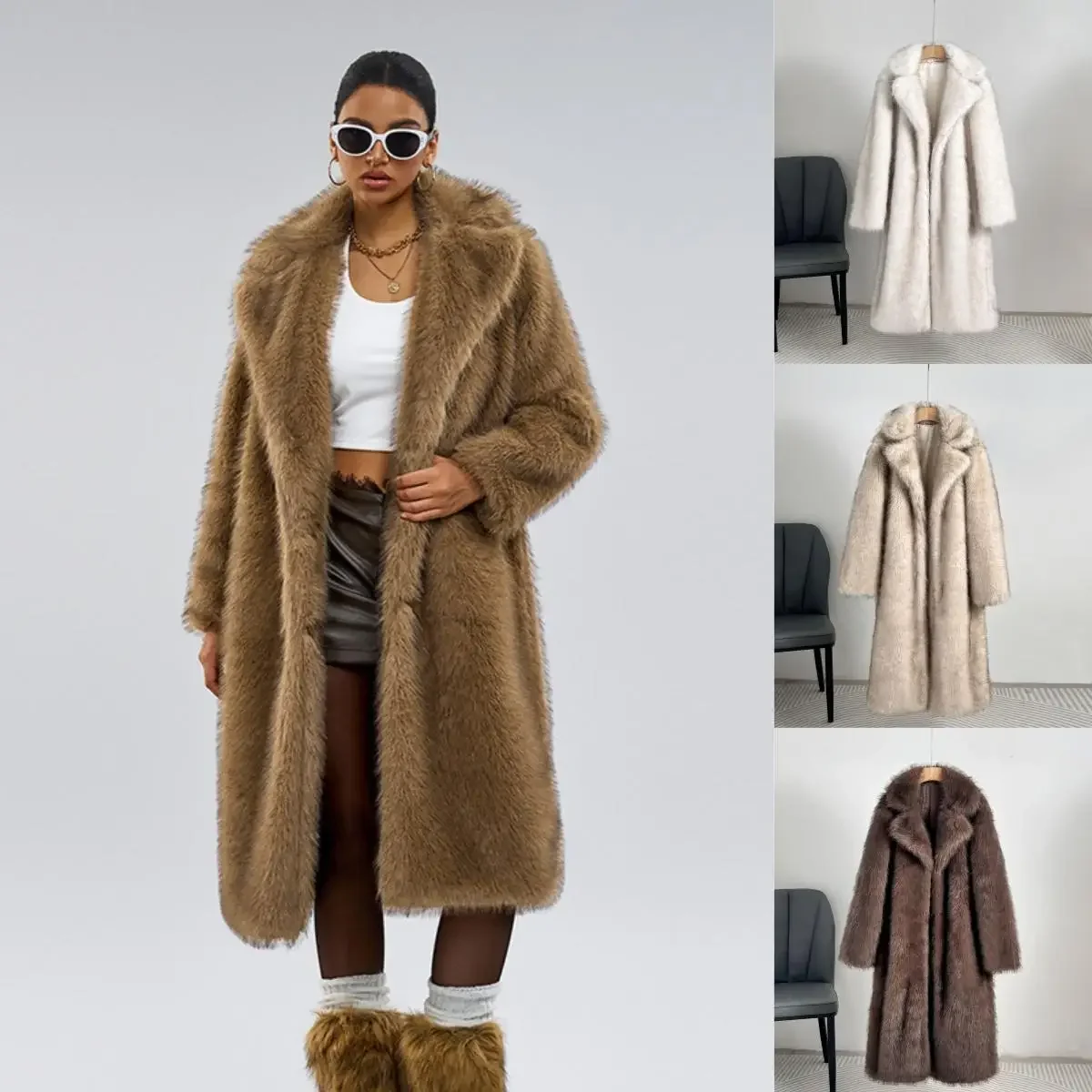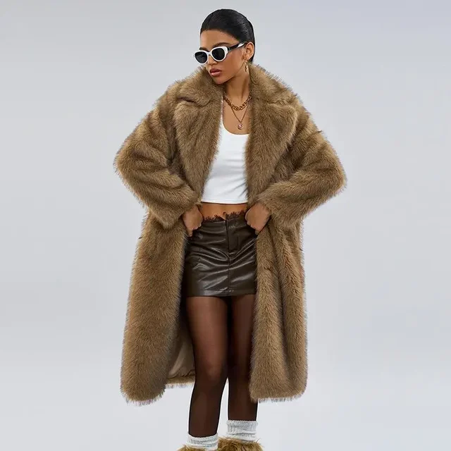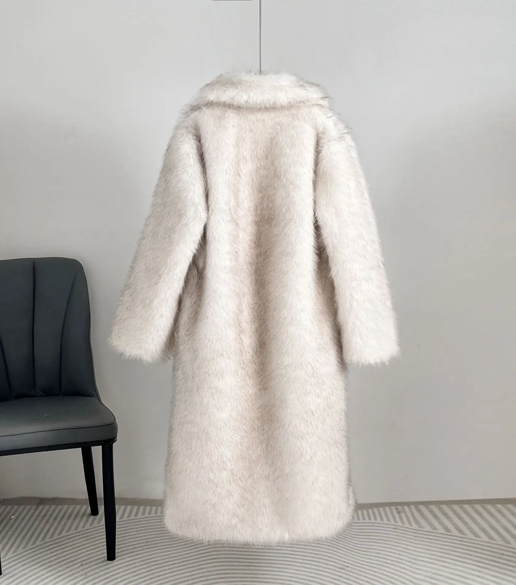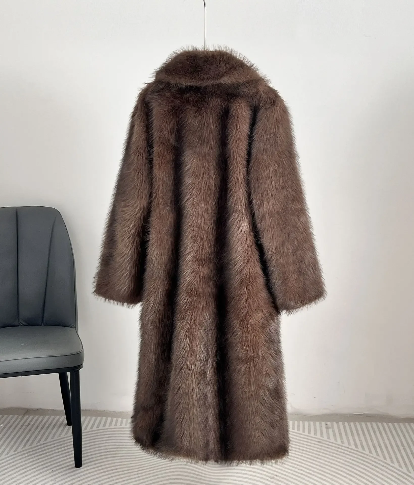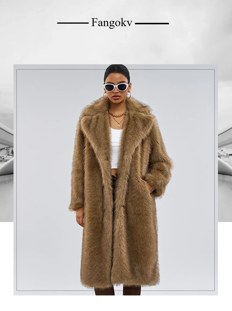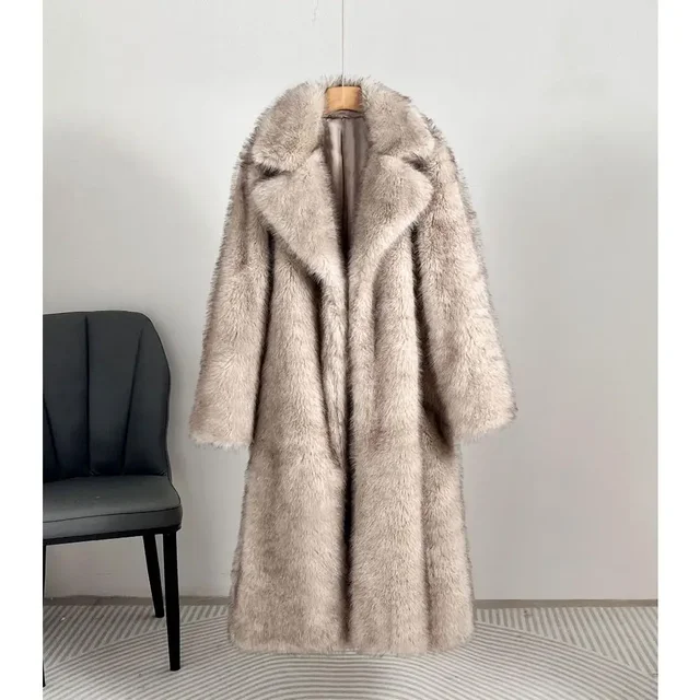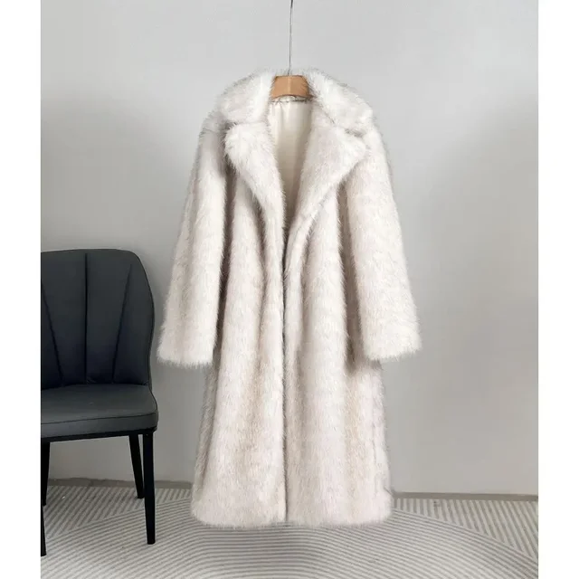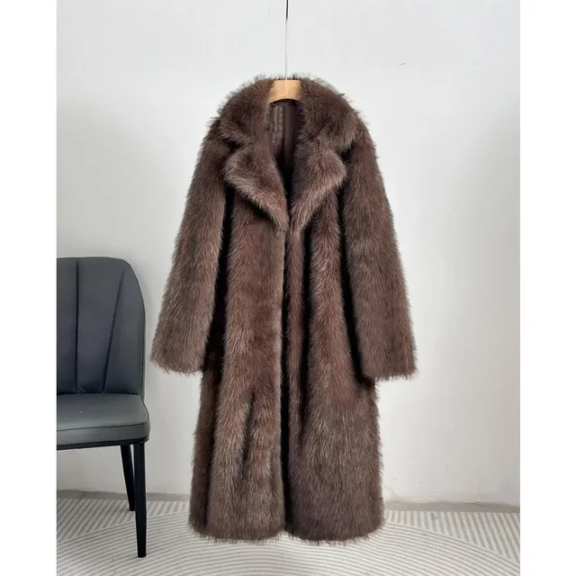 Neo Mint Vintage Luxury Long Faux Fox Fur Coat Women 2025 Winter Warm Fluffy Fur Jacket Female Street