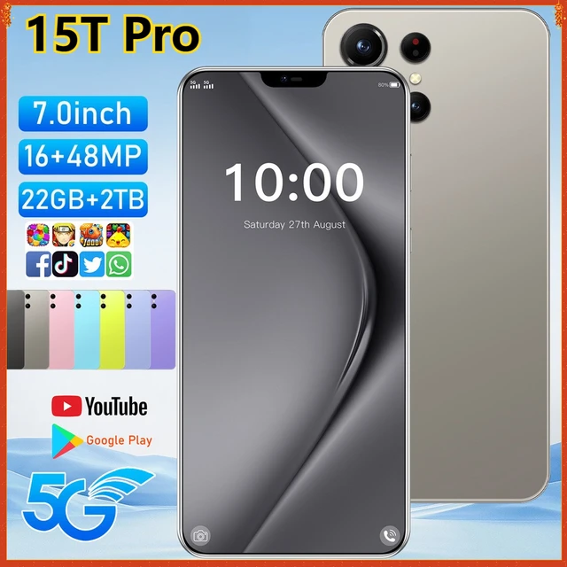New 15T Pro Smartphone 5G Android 7.0HD Original 22G+2TB Mobile Phone Dual Sim 8000mAh Unlocked Cell