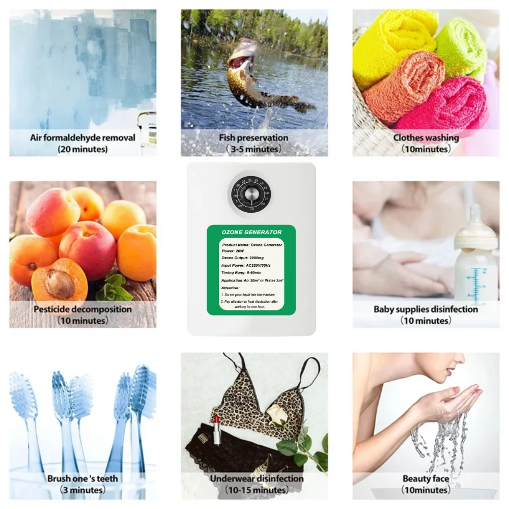 000mg/h Ozone Generator Machine with 60 minutes Timer for Fruits vegetables meat Food Water Air Sterilizer Purifier treatment
